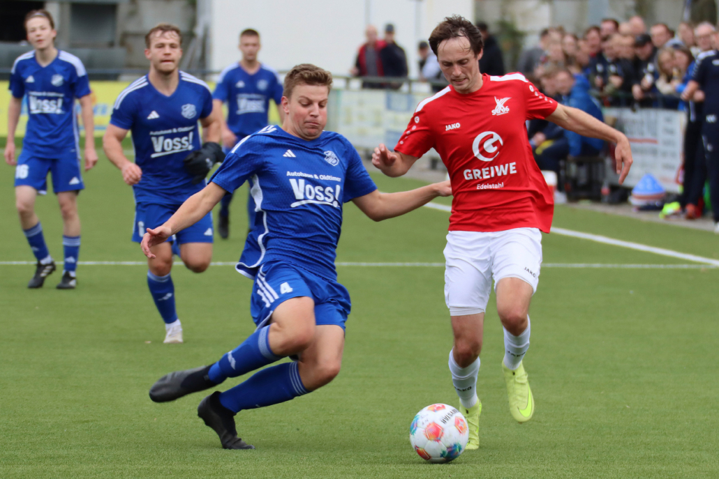 In der umkämpften Schlussphase erschien die nötige Portion Glück unverzichtbar. „Klar gerätst du ins Schwimmen, wenn du das vierte Tor nicht machst“, stellte Niklas Voss fest. Diesmal aber kam Turo Darfeld unbeschadet durch, brachte den knappen 3:2-Vorsprung gegen die SG Coesfeld 06 II über die Ziellinie und feierte den vierten Saisonsieg.