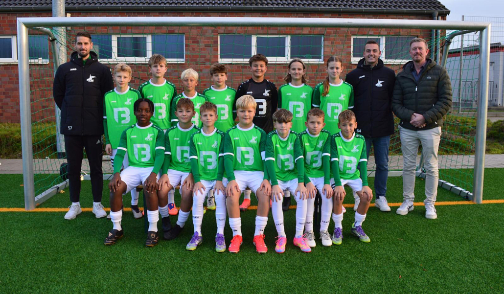 Hinten von links: Trainer Thomas Schulze Spüntrup, Fiete Tenkamp, Matz Maring, Justus Höink, Benjamin Hüsken, Oskar Brinkmann, Theo Stockmann, Jantje Hollemann, Trainer Lennard Bussmann, Sponsor Jochen Hollemann; vorne von links Jayden Damien, Till Kluthe, John Volmer, Jannis Selting, Kolos Katona, Leo Michel, Luis Bressau; es fehlt Trainer Justus Eggemann.