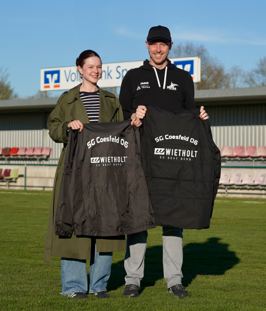 Die Jugendtrainer der SG Coesfeld 06 sind ab sofort bestens gegen Wind und Wetter gewappnet. Dank der großzügigen Unterstützung der Firma Heinrich Wietholt GmbH wurden alle Trainer mit neuen Regen- und Winterjacken ausgestattet.