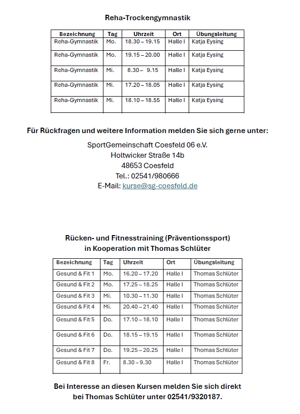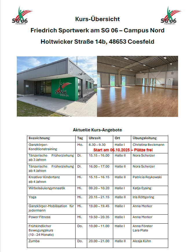 Die SportGemeinschaft Coesfeld 06 e.V. bietet Ihnen ein vielfältiges Kursprogramm.